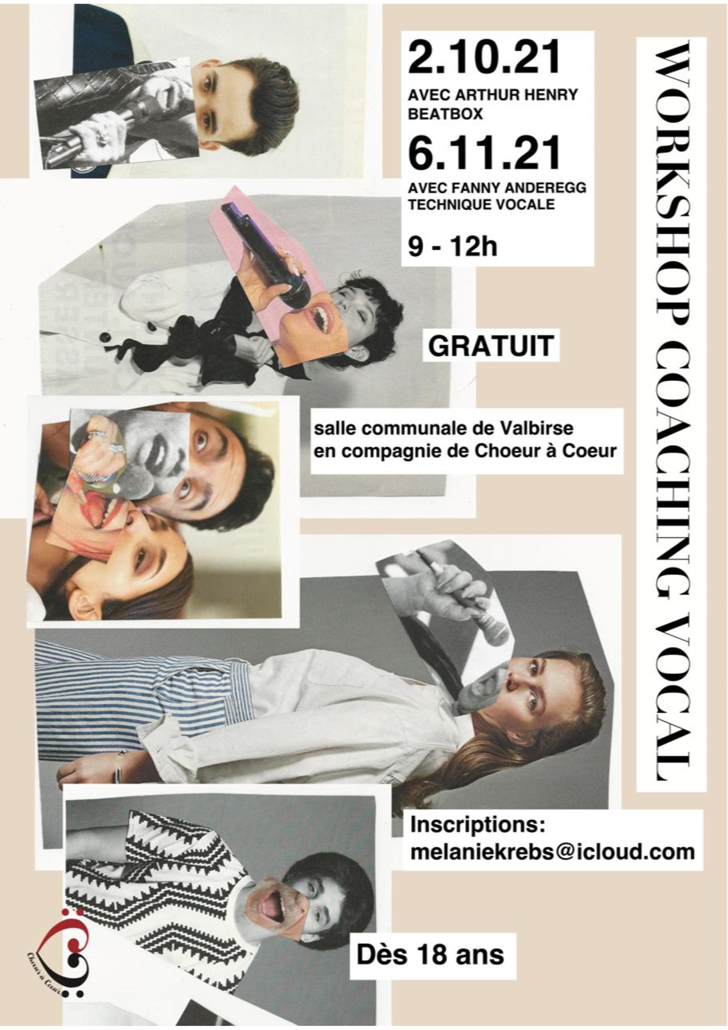 Vous avez envie de pousser la chansonnette ou simplement de tester un peu vos cordes vocales? Inscrivez-vous à nos ateliers de chant! Plus d’infos sur le flyer ci-après ou par email -> melaniekrebs@icloud.com: