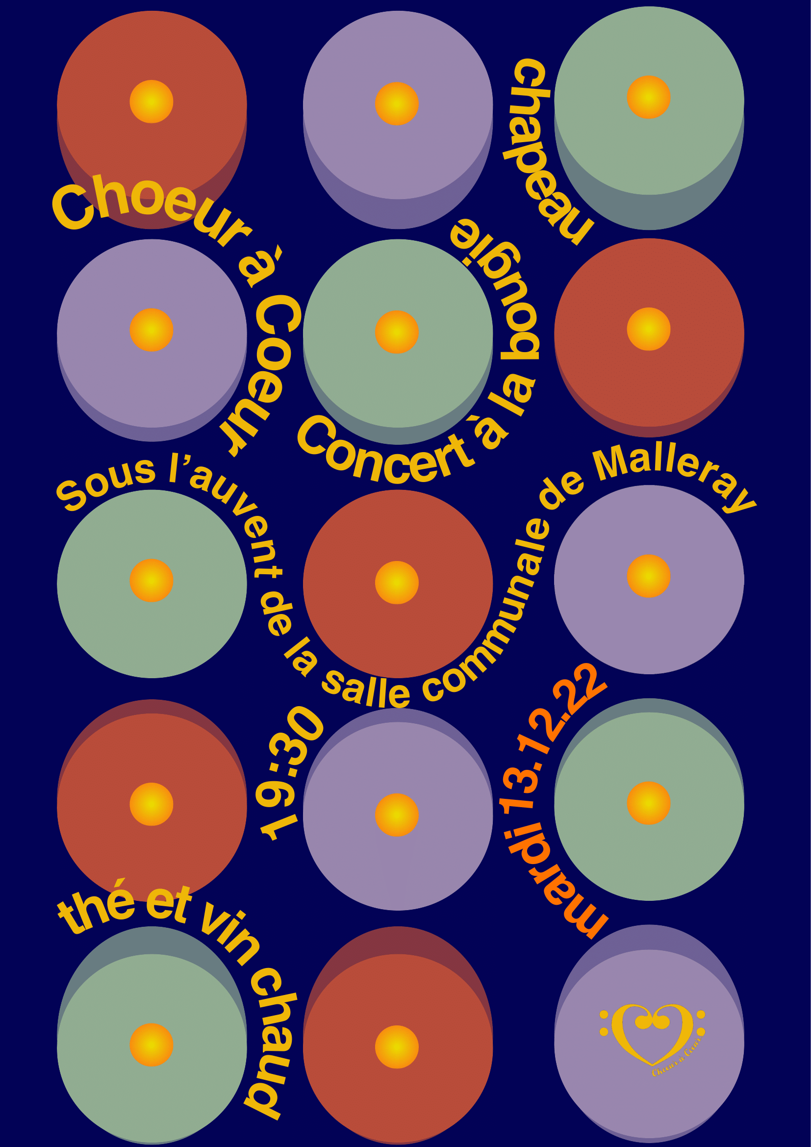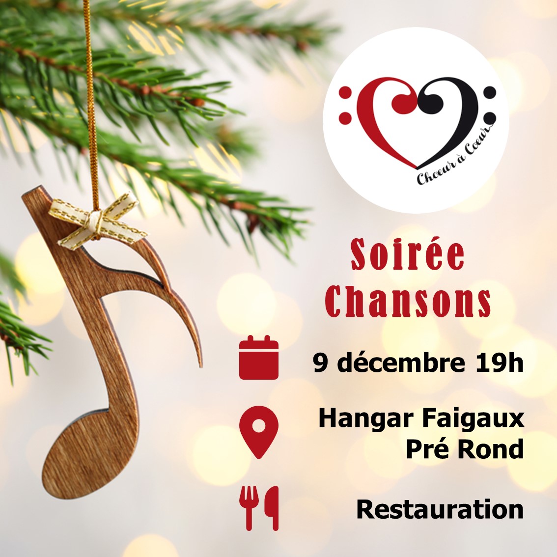 Choeur à Coeur vous convie le 9 décembre à 19h pour une soirée chansons. Le concert de Noël sera suivi d'une soirée karaoké avec restauration sur place..